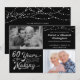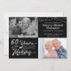Invitez vos invités avec cette invitation d'anniversaire de mariage de 60 ans en noir et argent avec un design de typographie rétro indiquant 60 ANS DE PRÉPARATION qui inclut leur année de mariage dans le cadre du design. Incluez leurs photos d'ALORS et d'AUJOURD'HUI pour une invitation amusante à recevoir. Les détails de l'invitation à la fête sont au verso. CONSELIL PHOTO : Choisissez des photos avec le sujet au milieu et/ou pré-cadrez-les dans des formes similaires AVANT de les télécharger et/ou utilisez l'outil de DÉCOUPAGE pour ajuster l'image dans la zone du modèle. ASSISTANCE : Pour obtenir de l'aide pour la modification ou la personnalisation de la conception, le changement de couleur, le redimensionnement ou le transfert du design vers un autre produit, contactez le concepteur AVANT DE COMMANDER via l