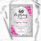 Invitation du 60e anniversaire. Design floral élégant en argent et rose. Comprend des bandes d'argent fausse parties scintillant, rose rose rose police de script et confetti. Parfait pour une fête d'anniversaire glam.