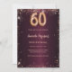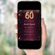 Pour un 60ème anniversaire élégant. Une couleur arrière - plan dégradé bordeaux. Décoré de faux éclats d'or rose. Personnalisez et ajoutez un nom et des détails du parti. Le nom est écrit avec un script de style manuscrit
