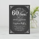 Invitation du 60e anniversaire. Elégant design vintage noir et blanc avec motif de tableau noir et police de script. Salutations à 60 ans ! Peut être personnalisé à tout âge! Message-moi si vous avez besoin d'une personnalisation plus poussée.