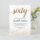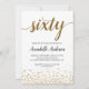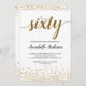 Dots Confetti d'or moderne Script 60th Birthday Invitation Le design comporte "soixante" dans un élégant script moderne et l'accent de points de confetti d'or. Si vous souhaitez customiser le texte "soixante" à un autre âge, n'hésitez pas à nous envoyer un courriel à panggadesigns@gmail.com .