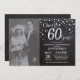 60e Anniversaire de Mariage avec photo personnalisée. Invitation Ardoise Noir et Argent. Soixantième Anniversaire de Mariage. Fond Diamanté Ardoise Noir et Argent. Confettis Argent. Anniversaire Adulte. Fête d'anniversaire pour homme ou femme. Pour une personnalisation plus poussée, veuillez cliquer sur le bouton "Personnaliser" et utiliser notre outil de conception pour modifier ce modèle.