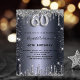 Une invitation moderne, élégante et glamour pour un 60ème anniversaire. Un arrière - plan faux argenté, décoré de gouttes. Personnalisez et ajoutez votre nom et les détails de votre fête. Le numéro 60 est écrit avec une police de style ballon, script.