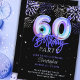 Célébrez un anniversaire marquant dans le style avec notre invitation personnalisée à 60e anniversaire avec des numéros de ballons bleu iridescente ! Cet élégant design présente un arrière - plan noir orné d'une superbes superposition de feux d'artifice et d'étoiles bleus, violets, argentés, ce qui en fait le choix idéal pour une fête festive et élégante. Les numéros de bulle de papier ajoutent une touche de luxe, tandis que la police de script ajoute une touche personnalisée et unique. Cette invitation est parfaite pour une fête de 60e anniversaire pour lui ou elle. Rendez sa journée spéciale encore plus mémorable avec cette invitation colorée et sophistiquée !