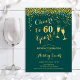 Invitation du 60e anniversaire. Salutations À 60 Ans ! Design élégant en vert émeraude et or. Il comprend des verres à champagne, des caractères de script et des confettis. Idéal pour une soirée de soixantième anniversaire. Personnalisez avec vos propres détails. Peut être customisé pour montrer n'importe quel âge.