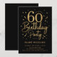 60th birthday party invitation in black and gold. Trendy modern design, perfect for a stylish men's or women's bday celebration. Features script font and confetti. Customize with your own details. Printed Zazzle invitations or instant download digital printable template.