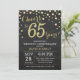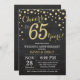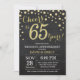 Invitation pour les 65 ans de mariage avec un tableau noir et or. Soixante-cinq ans d'anniversaire de mariage. Fond de diamant pailleté noir et or. Confettis dorés. Anniversaire adulte. Fête d'anniversaire pour homme ou femme. Pour une personnalisation supplémentaire, veuillez cliquer sur le bouton "Personnaliser" et utiliser notre outil de conception pour modifier ce modèle.