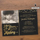 Célébrez un 70ème anniversaire pour lui ou elle avec cette invitation de fête photo en noir et or avec une photo et un design de typographie rétro indiquant 70 ANS DANS LA FABRICATION qui incorpore leur année de naissance dans le design avec une bordure de lumières à cordes. ASSISTANCE : Pour obtenir de l'aide sur la modification ou la personnalisation de la conception, le transfert de la conception à un autre produit ou si vous souhaitez coordonner des éléments, contactez le concepteur AVANT LA COMMANDE via l'onglet MESSAGE Conversation Zazzle ou envoyez un courriel à makeitaboutyoustore@gmail.com.