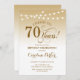 70th Birthday Invitation Design élégant or blanc avec des lumières à cordes de fées et la police de script. Salut à 70 ans ! Peut être personnalisé à tout âge! Message-moi si vous avez besoin d'une personnalisation plus poussée.