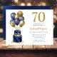 Cette fabuleuse invitation de 70e anniversaire pour hommes avec un gâteau bleu marine 2 couches et or avec des ballons bleu marine et or, le numéro 70 en or serait parfait pour célébrer votre mari, frère, père, ami, collègue. Traditionnel et classique, il est frais, moderne et contemporain. L'arrière est une feuille bleu marine de coordination.