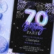 Célébrez un anniversaire marquant dans le style avec notre invitation personnalisée à l'anniversaire de 70e avec des numéros de ballons bleu iridescente ! Cet élégant design présente un arrière - plan noir orné d'une superbes superposition de feux d'artifice et d'étoiles bleus, violets, argentés, ce qui en fait le choix idéal pour une fête festive et élégante. Les numéros de bulle de papier ajoutent une touche de luxe, tandis que la police de script ajoute une touche personnalisée et unique. Cette invitation est parfaite pour une fête de 70e anniversaire pour lui ou elle. Rendez sa journée spéciale encore plus mémorable avec cette invitation colorée et sophistiquée !