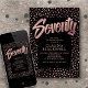 Commencez la fête sur le papier avec ce dessin audacieux et drôle d'invitation pour 70e anniversaire adulte. La typographie audacieuse et humoristique et les confettis festifs en or rose sur le noir donnent à cette invitation une ambiance classe mais humoristique. Parfait pour la femme qui aime être le centre de la fête. Commandez vos invitations imprimées ou téléchargez vos invitations numériques dès maintenant pour une journée qu'ils n'oublieront jamais !