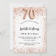 Pour un 70ème anniversaire élégant. Un arrière - plan blanc. Décoré de confettis d'or rose. Personnalisez et ajoutez un nom, ainsi que les détails du parti. Le nom est écrit avec un script de style écrit à la main, numéro 70 avec des polices de style ballon.