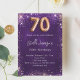Célébrez un 70ème anniversaire spécial avec cette magnifique invitation, parfait pour une soirée élégante. L'arrière - plan violet profond présente une belle texture inégale, accentuée par l'or rose et une touche dorée brillante. Le nom est écrit dans un script délicat et écrit à la main, ajoutant une touche personnalisée et sophistiquée. Customisez l'invitation en ajoutant le nom et tous les détails importants du parti. Ce design luxueux donne le ton d'une fête inoubliable.