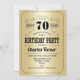 Invitation à la fête du 70e anniversaire. Élégant film en or et design noir. Peut être customisé à n'importe quel âge!