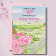 Cette charmante invitation au 70e anniversaire d'aquarelle présente un parcours de golf peint à la main avec une touche féminine — un sac de golf débordant de pivoines roses et de clubs de golf classiques. Conçu pour les femmes qui aiment le golf et les fleurs, cet invitation d'anniversaire unique et élégant sur le thème du golf est parfait pour célébrer un 70e anniversaire jalon dans le style. Idéal pour une fête de jardin ou une fête de club de golf.