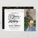 Invités Invitations à une fête d'anniversaire 75 ANS DANS LA FABRICATION avec ces invitations amusantes en noir et or avec une typographie rétro design, lumières à cordes et personnalisée avec 2 photos (peut-être utiliser les photos d'Alors et maintenant pour un souvenir mémorable). MODIFICATIONS : Modifiez le style, la couleur, la taille et le placement de la police de texte personnalisée par dans EDIT. ASSISTANCE : Pour obtenir de l'aide sur la modification ou la personnalisation de la conception, le changement de couleur, le redimensionnement, le transfert de la conception vers un autre produit ou si vous souhaitez coordonner des éléments, contactez le concepteur AVANT DE COMMANDER via l'onglet MESSAGE Conversation Zazzle ou envoyez un courriel à makeitaboutyoustore@gmail.com.
