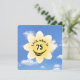 Graphique de fleurs blanches avec soleil brillant, sourire et yeux sur un arrière - plan du ciel bleu d'été pour une fête de 75ème anniversaire. Tout le texte peut être modifié.