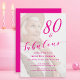 80 and Fabulous Eightieth Birthday Photo Hot Pink Script Invitation, classic script design 80th birthday invitation you can personalize and send out for your birthday party celebration. The words "80 and Fabulous" are set using popular typography for a clean minimal lovely look. Upload your favorite photo of the birthday celebrant, the opacity can be changed using the edit menu. The coloring in the photo can accent your chosen decor.