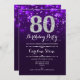 Invitation du 80e anniversaire. Elégant design blanc violet avec fausse parties scintillant argent. Anniversaire adulte. Dispose de diamants et de caractères de script. hommes ou femmes anniversaire invitation. Parfait pour une fête d'anniversaire élégante. Message-moi si vous avez besoin d'une personnalisation plus poussée.