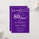 80th Birthday Invitation Simple violet design blanc avec des lumières à cordes de fées et une police de script. Bravo à 80 ans ! Peut être personnalisé à tout âge! Message-moi si vous avez besoin d'une personnalisation plus poussée.