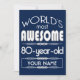 Célébrez l'anniversaire marquant de votre aîné préféré avec ce cadeau amusant qui leur rappelle à quel point ils sont fabuleux. Lettres blanches et grises sur arrière - plan bleu foncé. Customiser avec les noms, initiales ou autre texte. Cette série est en incréments de 5 ans (95, 90, 85, 80...). Si vous souhaitez avoir un autre âge (par exemple 97, 63, 74, etc.) et/ou un autre arrière - plan de couleur, veuillez m'envoyer un message. Je réaliserai des personnalisations pour vous gratuitement.
