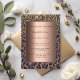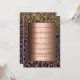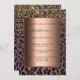 Elégante, cool, glamour et féminine invitation à une fête de 80e anniversaire avec un empreinte de léopard marron, doré et noir, décoré de confettis dorés. Un cadre en bronze métallique avec espace pour vos informations de fête. Retour : motif léopard avec confetti.