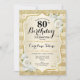 Invitation du 80e anniversaire. Design floral élégant en or et blanc. Comprend des rayures d'or de parties scintillant, des roses blanches, des polices de caractères stylisées et des confettis. Parfait pour une fête d'anniversaire glam.