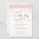 Invitation du 80e anniversaire. Salue À 80 Ans ! Design élégant en or blanc et rose. Il comprend des verres à champagne, des caractères de script et des confettis. Idéal pour une soirée coquette de quatre-vingts ans. Personnalisez avec vos propres détails. Peut être customisé pour montrer n'importe quel âge.