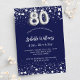 Une invitation moderne, élégante et glamour pour une fête de 80e anniversaire. Un arrière - plan bleu marine, décoré de faux étoiles argentées. Personnalisez et ajoutez votre nom et les détails de votre fête. Le numéro 80 est écrit avec une police de style ballon.