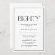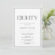 C'est une invitation à la fête du 80e anniversaire, élégante, chic et moderne 5x7. Il s'agit d'un design de typographie simple et élégant en noir et blanc classique pour un look moderne. Veuillez contacter le concepteur pour toute question concernant ce design.