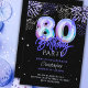 Célébrez un anniversaire marquant dans le style avec notre invitation personnalisée de 80e anniversaire avec des numéros de ballons bleu iridescente en feuille! Cet élégant design présente un arrière - plan noir orné d'une superbes superposition de feux d'artifice et d'étoiles bleus, violets, argentés, ce qui en fait le choix idéal pour une fête festive et élégante. Les numéros de bulle de papier ajoutent une touche de luxe, tandis que la police de script ajoute une touche personnalisée et unique. Cette invitation est parfaite pour une fête de 80e anniversaire pour lui ou elle. Rendez sa journée spéciale encore plus mémorable avec cette invitation colorée et sophistiquée !