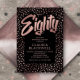 Commencez la fête sur le papier avec ce design audacieux et drôle d'invitation adulte de 80e anniversaire. La typographie audacieuse et humoristique et les confettis festifs en or rose sur le noir donnent à cette invitation une ambiance classe mais humoristique. Parfait pour la femme qui aime être le centre de la fête. Commandez vos invitations imprimées ou téléchargez vos invitations numériques dès maintenant pour une journée qu'ils n'oublieront jamais !