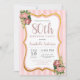 Invitation de fête d'anniversaire 80 ans vintage shabby chic rose pâle rayure paillettes dorées florale