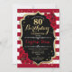 Invitation 80e anniversaire - Rouge or noir blanc rayures Ros