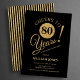 Cheers to 80 years! 80th birthday party invitation in black and faux glitter gold. Simple modern design, perfect for an elegant men's or women's bday celebration. Customize with your own details. Can be personalized into any age! Printed Zazzle invitations or instant download digital printable template.