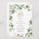 Cet exquis eucalyptus à l'aquarelle avec des embellissements en feuille d'or et des points plaqués or à 85e anniversaire invitation est parfait pour célébrer votre femme, maman, soeur, tante, ami, grand-mère. Son design fleuri et doux est moderne mais traditionnel. L'arrière a une branche de coordination de l'eucalyptus. Sélectionnez Personnaliser ce modèle pour en faire le vôtre. En quelques secondes vous verrez vos incroyables invitations à la fête du 85e anniversaire.