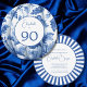 Une bande bleue et blanche avec une élégante invitation 90ème anniversaire à fleurs bleues — l'âge peut être changé pour n'importe quel âge. Un design joli et évident qui a des modèles pour vous de changer facilement l'information pour votre propre. Levez votre anniversaire d'inspiration bleue et blanche.