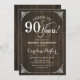 90e Invitation d'anniversaire. Elégant design rustique vintage avec motif en bois brun foncé et police de caractères. Salut à 90 ans ! Peut être personnalisé à tout âge! Message-moi si vous avez besoin d'une personnalisation plus poussée.