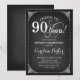 90e Invitation d'anniversaire. Elégant design vintage noir et blanc avec motif de tableau noir et police de script. Salut à 90 ans ! Peut être personnalisé à tout âge! Message-moi si vous avez besoin d'une personnalisation plus poussée.