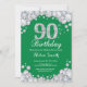 90e Invitation d'anniversaire. Diamant de la Rhénanie verte et argentée. Élégant invitation du Bassin d'Anniversaire. Anniversaire adulte. Les femmes, anniversaire. Hommes Anniversaire.