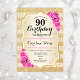 90e Invitation d'anniversaire. Design élégant en or et rose. Comprend des bandes d'or de parties scintillant faux, des roses roses roses stylisées police et confetti. Parfait pour une fête d'anniversaire glam.
