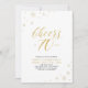 Fêtons votre journée spéciale avec cette élégante invitation à la fête du 70e anniversaire. Ce design présente une typographie or chic "Cheers to 70 years" et des éléments or. Vous pouvez customiser le texte et la couleur arrière - plan. D'autres articles de fête correspondants sont disponibles dans ma boutique BaraBomDesign.