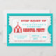 Un design ludique invite les clients à se préparer pour l'événement principal ! Sous la forme d'un billet d'entrée, cette invitation présente un joli éléphant au sommet de la tente de cirque et contient toutes les informations sur l'événement dans un format facile à customiser. Un excellent moyen de créer l'excitation de vos invités en anticipant la célébration d'anniversaire du carnaval ou du cirque prévue pour votre fils ou votre fille !