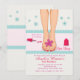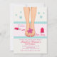 Une charmante invitation pour une journée au spa pour célébrer un anniversaire spécial ou une sortie entre filles. La carte présente des pieds avec du vernis à ongles rouge avec un bord festonné et un fond floral. (FP)