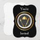 Invitation à dîner modèle vierge. Dîner Dîner invitation à dîner, personnalisez les informations de votre événement, la couleur de style et plus encore. Métal doré avec fond noir.