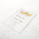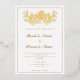 Cette belle faire-part de mariage à la fois élégante et classe convient aux mariages formels où l'on veut faire une impression durable dès le début ! Ce design présente des fleurs dessinées à la main, imitant un arrangement de feuille d'or sur un arrière - plan crème. Maintenant disponible en véritable feuille d'or !