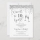 Invitation d'anniversaire de 10 ans de mariage. À la 10 Ans! Design élégant en blanc et argent. Comprend des verres à champagne, une police de caractères script et des confettis. Parfait pour une célébration élégante de 10 ans de mariage. Cartes d'invitation Zazzle imprimées ou modèle numérique à télécharger instantanément. Peut être personnalisé pour afficher n'importe quelle année ! Personnalisez avec vos propres détails.