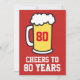 Concours à 80 Ans d'invitation à la fête de la bière pour un 80e anniversaire de la fête. C'est un arrière - plan rouge avec l'image d'une grande bière. Idéal pour un amoureux de la bière qui a quatre-vingt ans. Portez un toast à quelqu'un célébrant 80 ans !