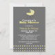 Élégante invitation à la baby shower réalisée en gris, avec de douces illustrations d'une poussette bébé jaune, en haut, et un motif à pois jaune et blanc, le long du bas et couvrant le dos. Personnalisez le texte jaune et blanc, pour la baby shower de votre couple.
